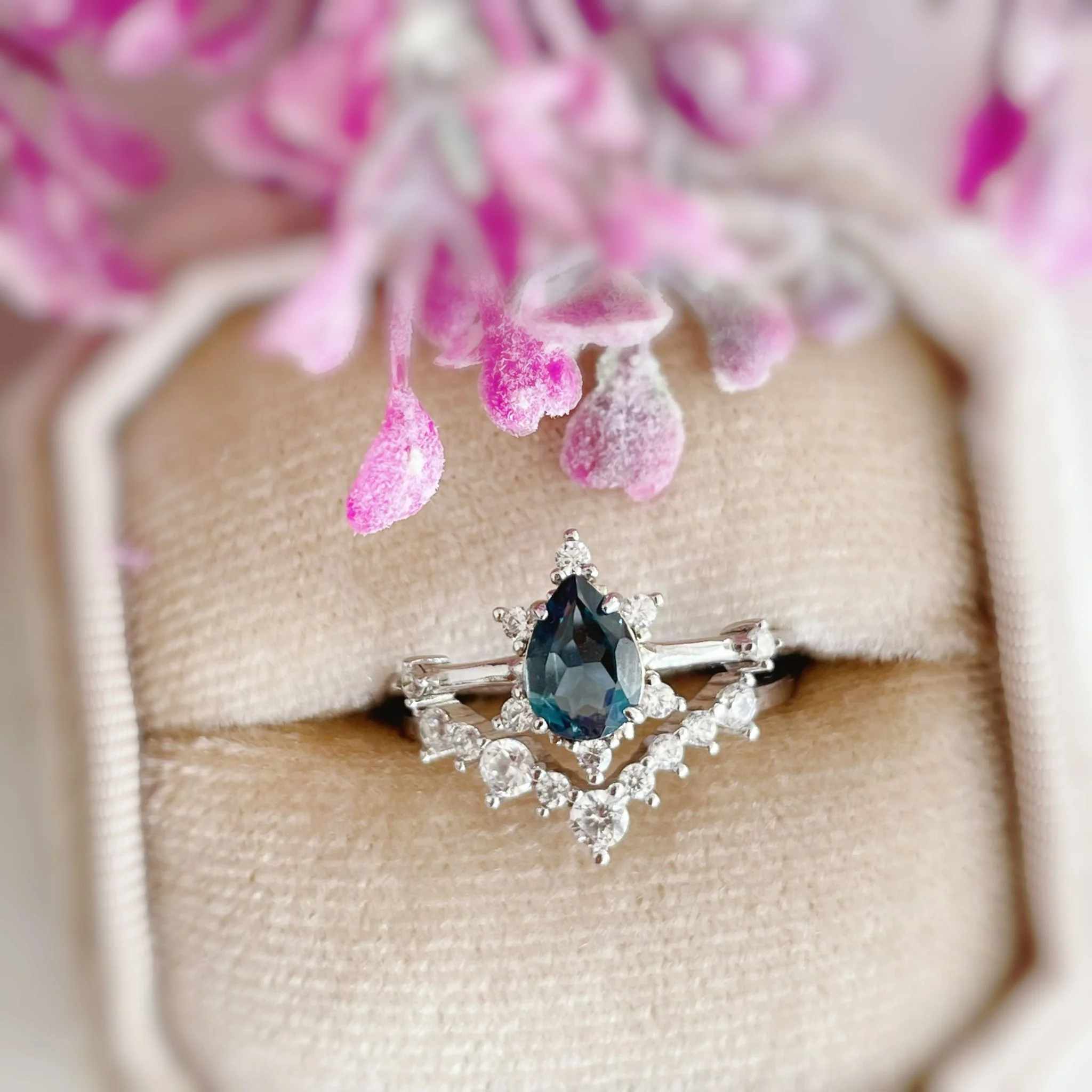 ✦ 5x7mm natural pear-cut London blue topaz (main ring center stone)