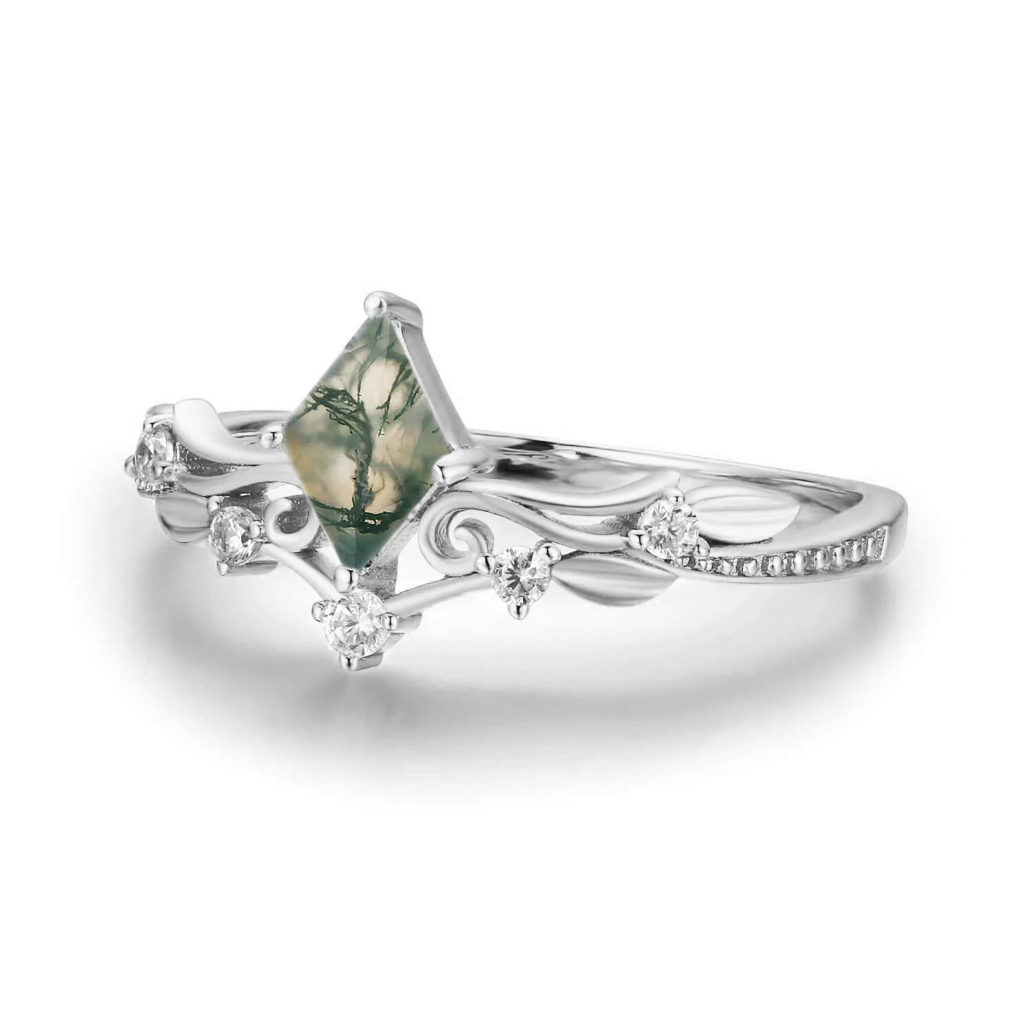 ✦ 5x7mm natural rhombus-cut moss agate (center stone)